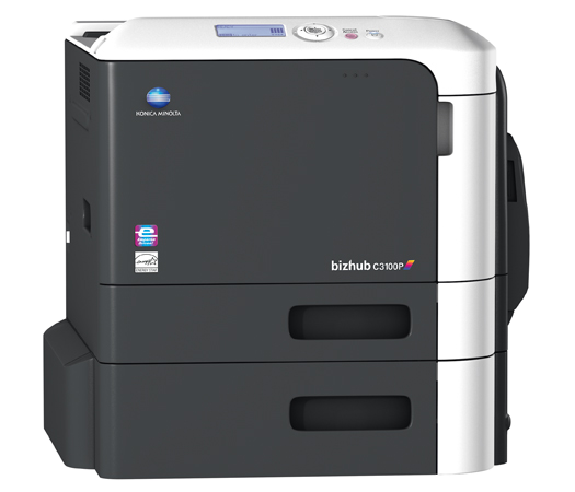 With space-saving design and high-speed output of 32 color prints per minute, the bizhub C3100P compact color laser printer is an ideal productivity solution for busy workgroups, branch locations and small to mid-size businesses that have increasing document demands.